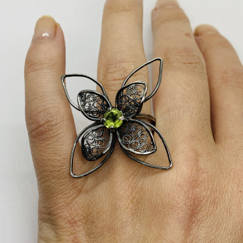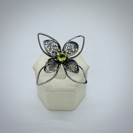 inel filigran lucrat manual din argint 999/925 cu peridot natural